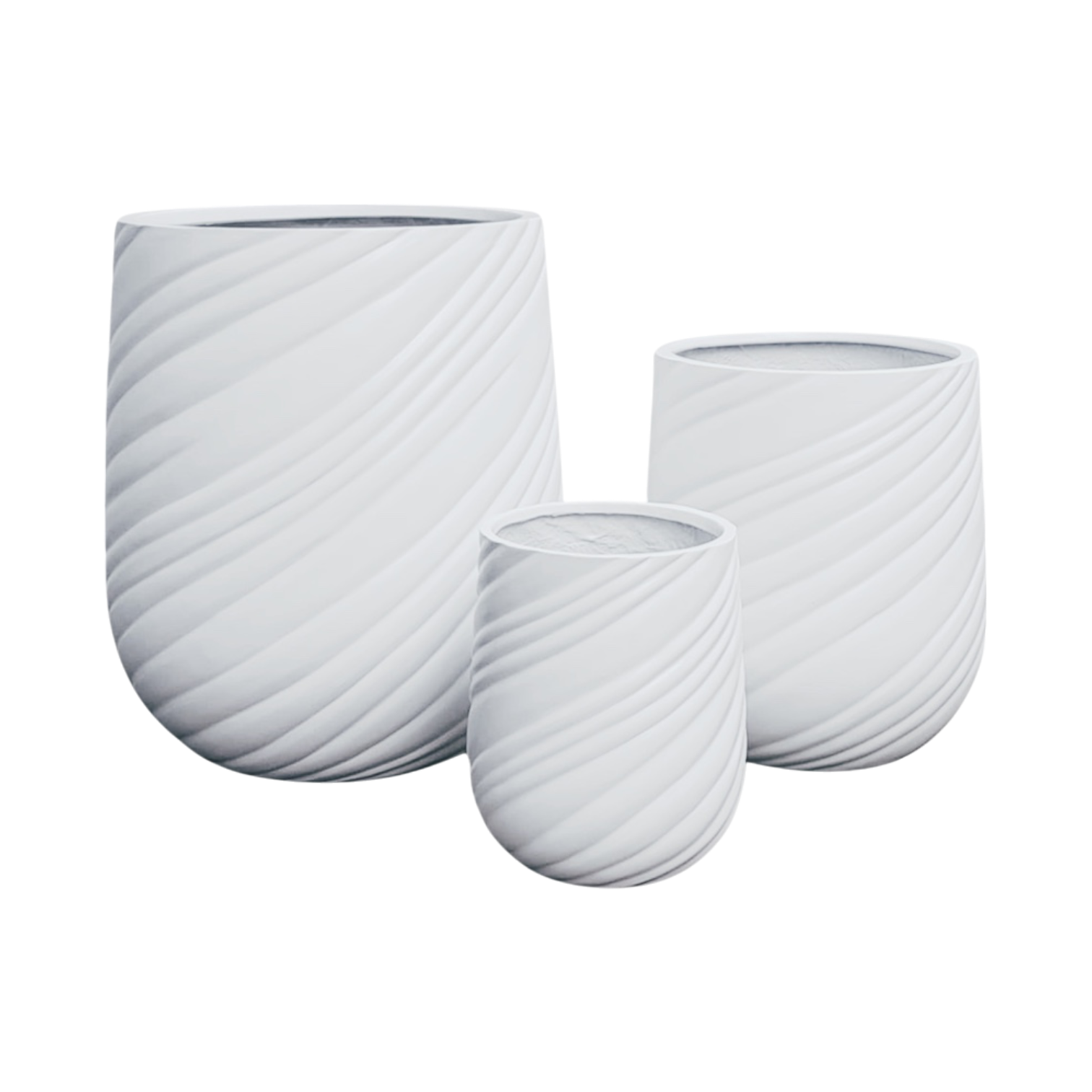 This Imported planter features a striking modern design with a matte finish. The elegant and swirling grooves on the exterior give them a dynamic and textured look, perfect for contemporary spaces.
