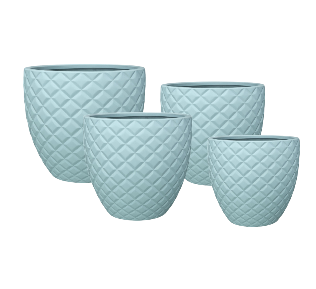 This Imported planter features an elegant, textured design with a quilted pattern. The wide open top and slightly tapering bottom creates a soft, organic silhouette, making it suitable for modern decor styles.