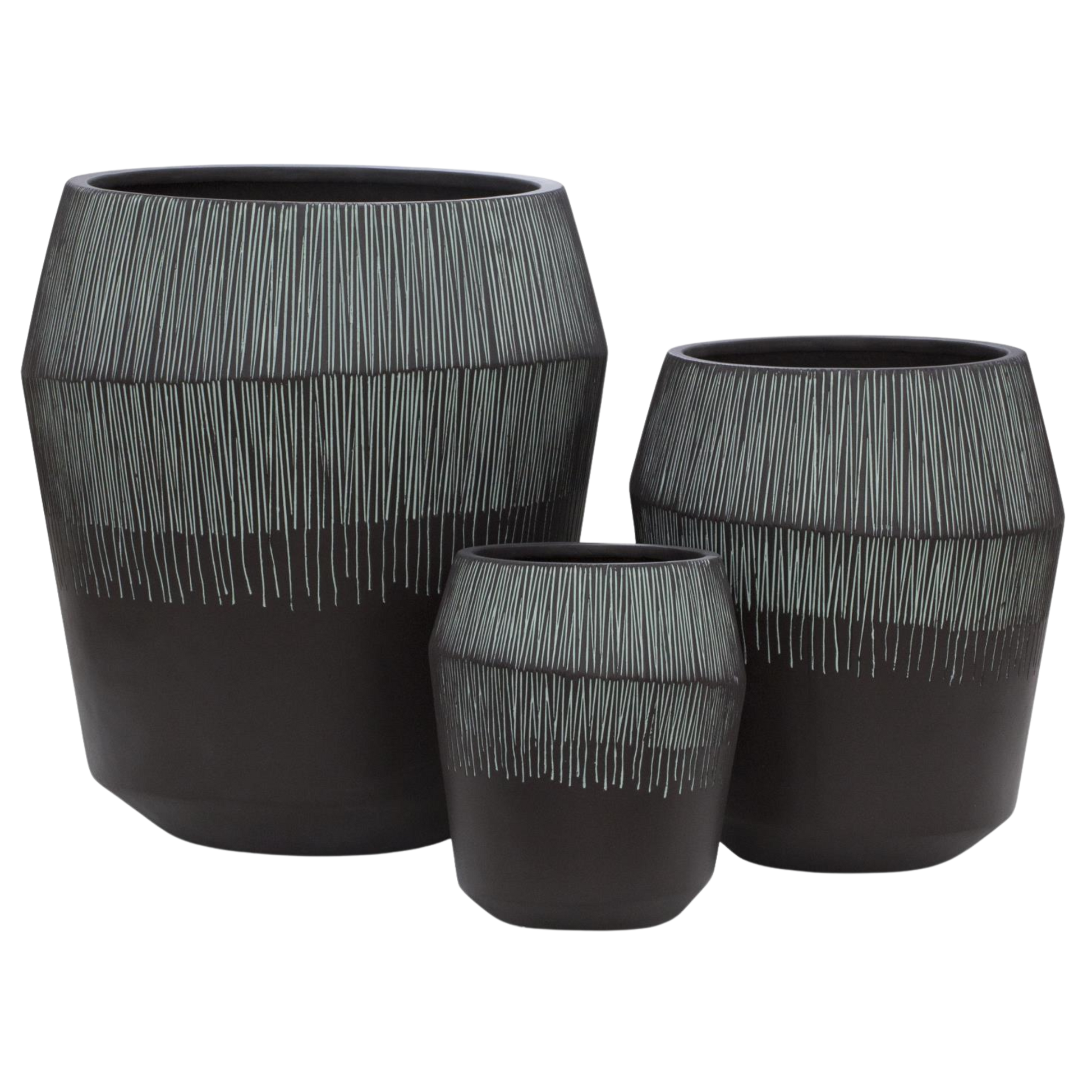 This imported planter features a sophisticated matte finish and an intricate hand-etched vertical linework, this planter radiates refined elegance. The clean silhouette is elevated by the subtle texture, offering a perfect blend of contemporary design and artisanal craftsmanship.